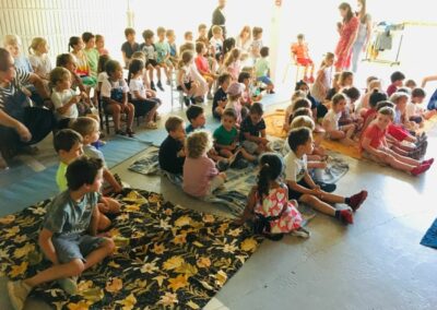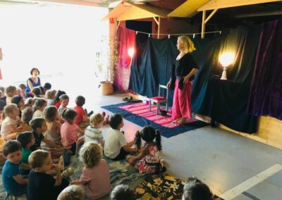 Tell us a story Nanni 23 Jun 2021 | newsletter 3-6 years This morning, the children of the green and yellow classes attended with great pleasure the Nanni show. The storyteller told them several stories in a beautiful setting, which they listened to with attention and smile.