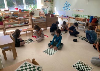 Les enfants apprennent la réussite en jouant aux échecs 12 Jan 2021 | classe 6-9 ans Les enfants profitent des cours d’échecs avec Charlotte et Stevens (parents de Célia)et jouent en classe pendant le temps calme.
